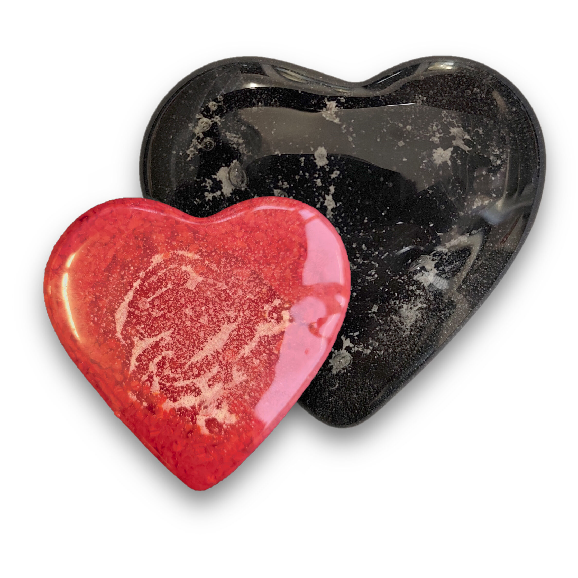 This keepsake containing your loved one’s ashes is cast in glass. The Swiss artist lovingly handcrafts each heart. We require 2 grams of ashes and approximately 3-4 weeks for its creation.