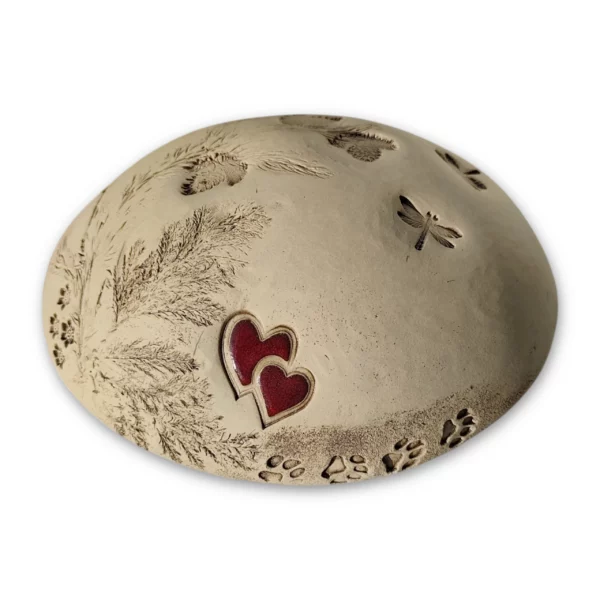 Fabriquée en argile cuite à haute température, cette urne pour animaux est très robuste et convient donc à une utilisation en extérieur. Nous recommandons de placer les urnes dans un endroit sec en hiver afin qu’elles ne subissent aucun dommage en cas de gel.