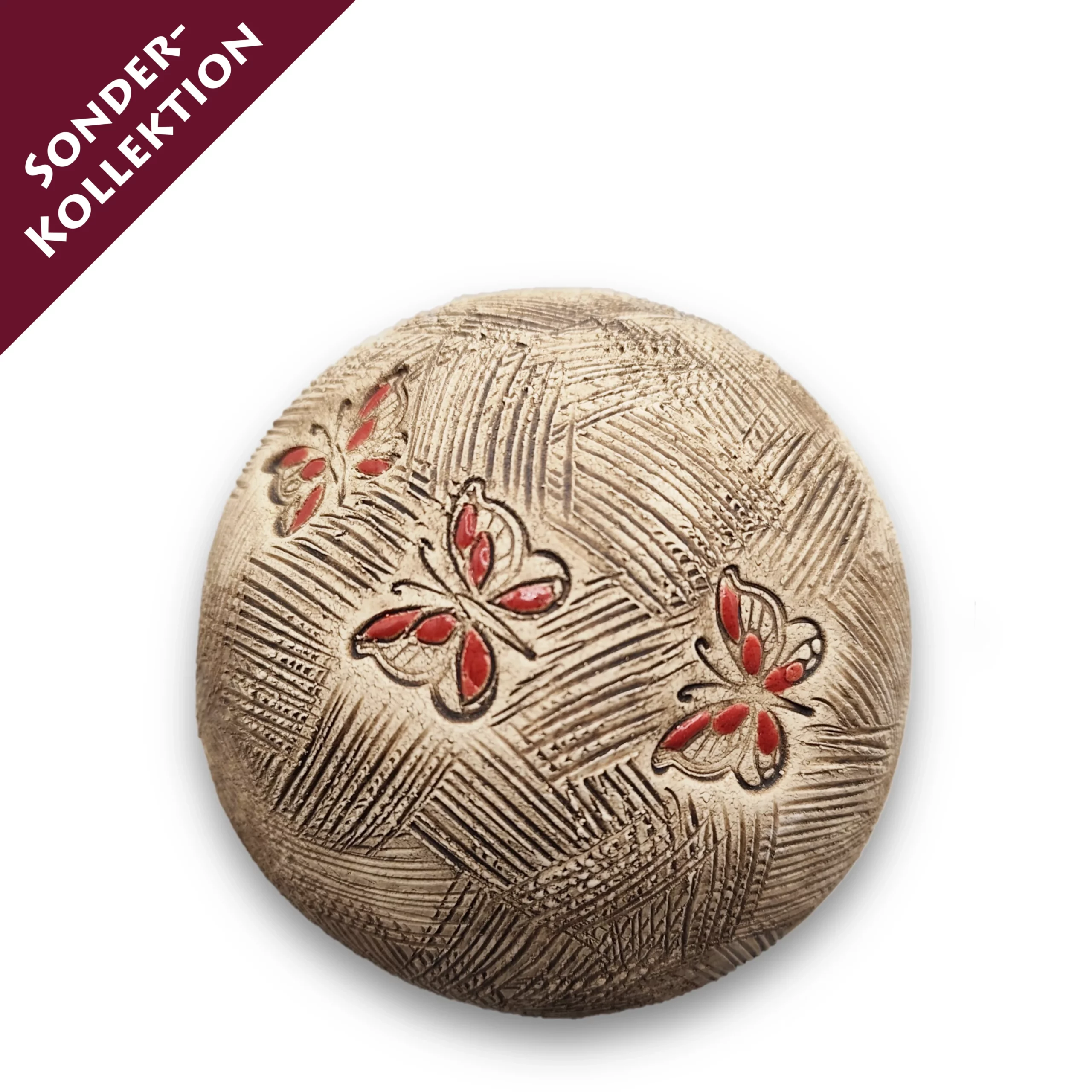 Neu und nur solange der Vorrat reicht, erhalten Sie diese wetterfeste Tierurne mit rot-orangen Schmetterlingen.